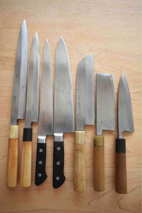 会社も営業再開して、うれしいことにお客さんが戻ってきつつあります。 今一度、包丁を最高の状態にして仕事に臨みたいと思い、会社で使っている包丁を自宅に持ち帰り、家の包丁と共に研いで磨きました。 有次 柳刃包丁 一尺(学校)柳刃包丁 九寸正本総本... -