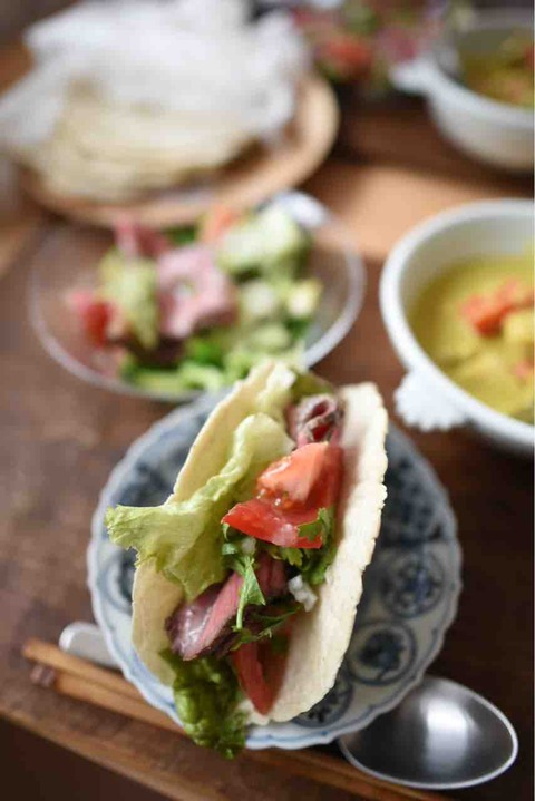 妹が新居に遊びに来てくれたので、低糖質メニューでもてなしました。 グリーンカレーローストビーフサラダのタコス タコスの皮、トルティージャはマサ(とうもろこし粉)の20%を小麦ファイバーに置き換えて作りました。妹も手伝ってくれました。タコスには... -