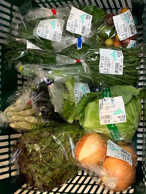 先週もJAファーマーズ御殿場へ虚心坦懐に野菜を買いに行きました。 モロヘイヤ、大葉、ミニトマト、ニラ、いんげん、キャベツ、フィノッキオ(フェンネル)、なす、ズッキーニ、真竹、サニーレタス、玉ねぎ キャベツ、玉ねぎ、モロヘイヤ、人参、ニラ、豚... -