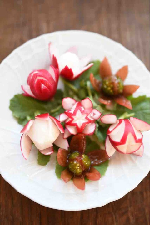 お友達に、カービングの基礎を教えてもらいました。カービングナイフを使って、ラディッシュに切り込みを入れてお花を形作りました。簡単そうに思えたけど、実際にはすごく難しくてラディッシュがボロボロになりました。ミニトマトも、皮目にだけ切り込み... -