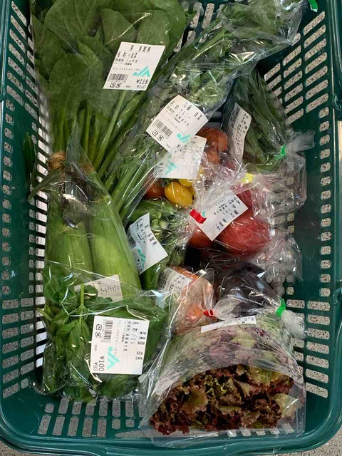 今週もJAファーマーズ御殿場でいろいろな野菜を買ってきました。 小松菜、セロリ、いんげん、ミニトマト、トマト、オクラ、とうもろこし、バジル、ミニ人参、レタス、なす 鶏ハム、レタス、トマト、バジル、粉チーズでイタリア風サラダを作りました。 ボー... -