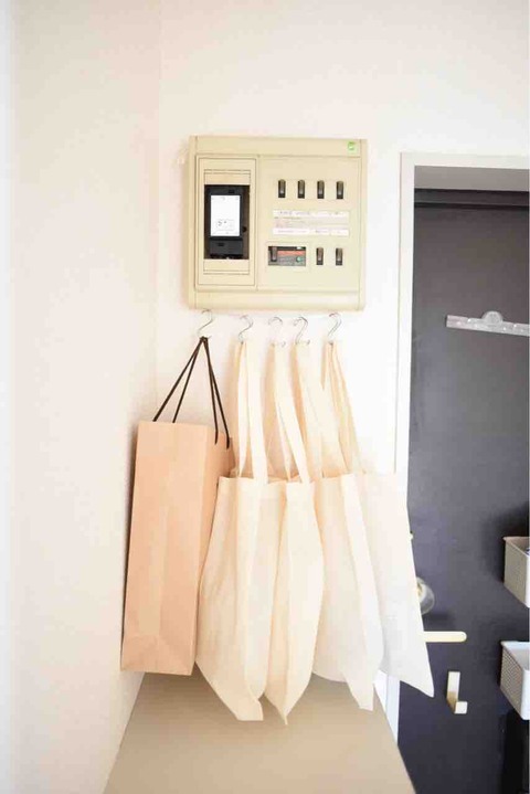 資源ゴミの収納をもうけました。 玄関の靴箱の上方にブレーカーボックスがあるので、それに紐をぐるりと回し、S字フックを付けてバッグをぶら下げました。S字フックは手持ちのものを使い回しました。 バッグの中身は左から次のようになっています。 古紙と... -