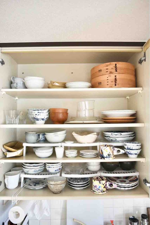 キッチンの吊り戸棚に食器をすべて収めています。 数年かけて・・・、作家の器、古伊万里、アメリカのマグカップ、バカラのタンブラー など、厳選して集めました。 料理が終わって器を選ぶ時、すごく幸せです。 食後、器を拭いてしまうのは息子の仕事なの... -