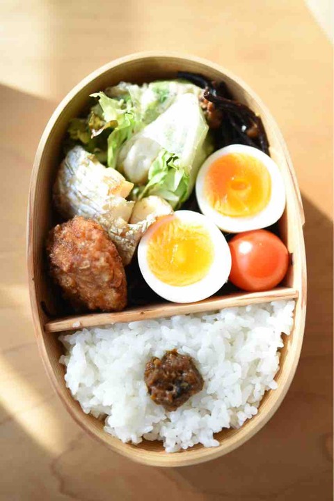 相変わらずバタバタと忙しい中、作れるものは作ってしのいでいます。 息子が高校に入学したので、お弁当作りを再開しました。 鶏ハムの生春巻き、ひじき煮、太刀魚の若狭焼き、半熟玉子、鶏肉の唐揚げ、ミニトマト、白飯、蕗味噌 蕗味噌は職場の長老が手作... -