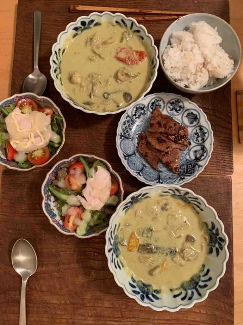 鶏もも肉、玉ねぎ、ピーマン、茄子、ぶなしめじ でグリーンカレーを作りました。 キャベツ、椎茸、長葱、合挽肉 で餃子も作りました。皮包みは息子が手伝ってくれました。 直売所でバターナッツかぼちゃを買いました。 冷製のポタージュを作りました。この... -