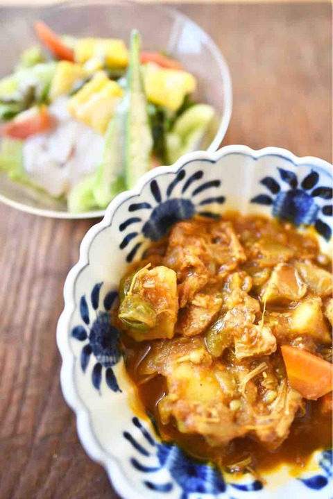 鶏もも肉、玉ねぎ、人参、ピーマン、じゃがいも、えのきだけ でスパイスカレーを作りました。サニーレタス、とうもろこし、オクラ、ミニトマト、鶏ハム でサラダも作りました。 南瓜が安かったので、虎むきにしてそぼろ煮にしました。 色々とあり合わせの... -
