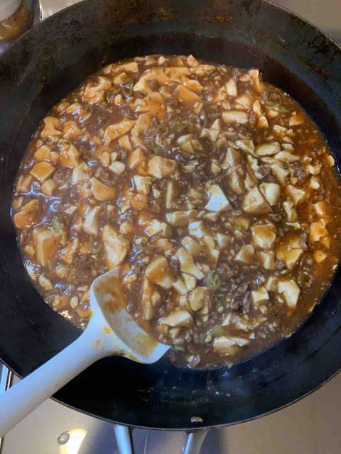 味の濃いものが食べたくなり、麻婆豆腐を作りました。絹豆腐、豚ひき肉、乾燥帆立貝柱(水で戻したもの)、長葱 を使いました。できあがりに花椒をたっぷりと挽き入れました。枯節を削って昆布との混合出汁を引き、ニラ玉汁も作りました。すごくおいしかっ... -