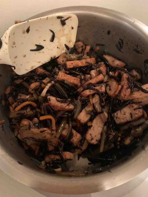 蕗を板ずりし、下ゆでしてから、ひじき煮に加えました。すごくおいしかったです。 お友達が遊びに来たので、そのひじき煮と豚の生姜焼き、ニラ玉汁、サラダ でご飯を作りました。 翌朝の朝食。サラダ、トースト、ベーコンエッグ、カラマンダリン、台湾茶。... -