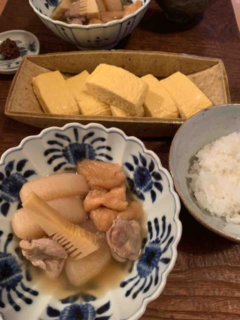 筍、大根、油揚げ、鶏もも肉 で炊合わせを作りました。余った出汁で出汁巻き玉子を巻きました。 鶏挽肉、大和芋、卵 を合わせて鶏つくねを作り、そのまま椎茸、葱、白菜、春雨 と煮込んでスープを作りました。 麻婆豆腐も作り、醤油味のご飯に鶏肉と玉ねぎ... -