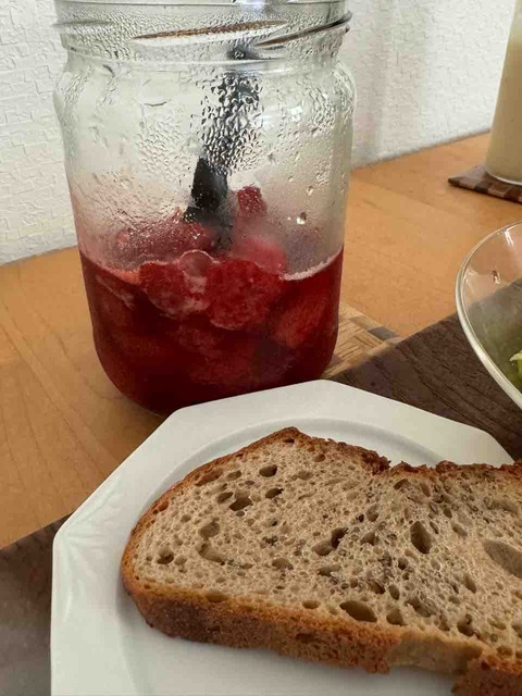 小粒のいちごが安く売られていたので2パック買い、低糖質のジャムを作りました。 作り方はこちらの記事をご参照ください。いちごの粒をつぶさないようにして煮汁を詰め気味にするとジャムになります。 2パックも煮たのに、保存ビンが大きいせいか、量が少... -