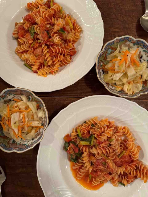 久しぶりの更新となります。 低糖質フジッリでトマトソースパスタを作りました。 キャベツ、小松菜、人参、厚揚げ、豚肉 でチャンプルーも作りました。 出汁を引き、がんも、蕪、蕪の葉、豚肉 で煮物も作りました。 残り野菜を使ってスパイスカレーも作り... -