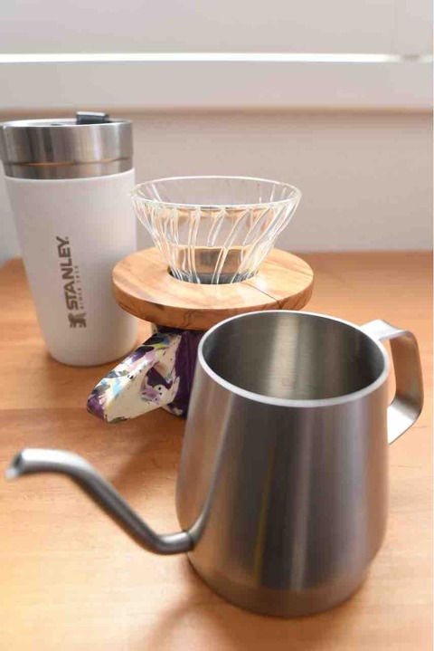 現時点で気に入って使っているコーヒー用具をご紹介します。 奥から順に STANLEY GO TUMBLER 0.47LHARIO V60 耐熱ガラス透過ドリッパー オリーブウッドEcho Park Pottery マグKINTO プアオーバーケトル 430mL タンブラーは車載用として使っていましたが、... -