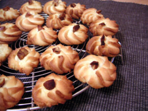 久しぶりにお菓子作りをしました。私の好きな絞り出しクッキーです。レシピブックを見ると、「シュプリッツゲベック」という名前で載っていました。ウチのガスオーブン「コンベック」だとあっという間にこんがり焼き上がったのでうれしかったです。