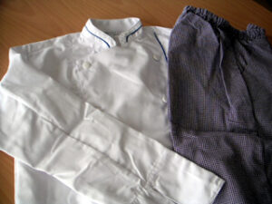 単なる説明とか、コックコートのサイズ合わせですので、そんなに気合いを入れる必要はないように思います。