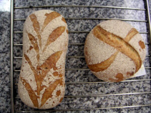そこで今回は、生地への打ち粉を控えめにし、ブラシで打ち粉をよく払い、生地の両面をジッと観察してきれいな面が表面に出るようにすごく慎重に巻いた。その結果、前回よりはずっときれいに焼き上がった。