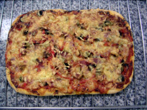 パン・ド・セーグルは、焼き上がって一日たったものがおいしいということで、翌日、薄切りしてロックフォールチーズをのせて食べてみた。しっとりしてすごくおいしかった。