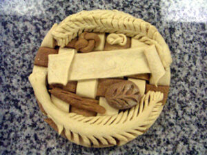 本日のコルドン・ブルー パン基礎9回目の授業、3番目に作ったのは「ミッシュ」、大きな丸いパンだ。機械捏ねした生地を手渡され、成形しただけだったけど、生地量が1.6kgもあったから重かった。焼き上がったミッシュは1.3kg, 直径30cmもあった。