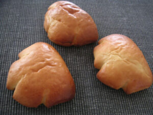その割にはうまくいって、ふっくらとしたクリームパンができあがった。(写真は一晩たってちょっとしわができてしまった状態だけど。)