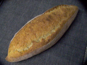 今回は、パン内部への火通りを良くするため、250℃で10分、220℃で10分、200℃で12分加熱した。要は、最初に高温でクープを開かせ、その後は内部に良く火が通るようにじっくり低温で加熱したと言うこと。