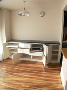 以前から、キッチンのすぐ横のこの位置に作業カウンターを設けたいと思っていました。