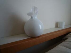 あれから、強度補強のため大きなL字金具を裏に足し、ランプが壊れたので新しく買い替えました。まんまるのティッシュケースはあまりのかわいさについつい衝動買いしてしまいました。