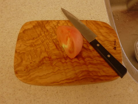 このオリーブボードは堅くて重くて、包丁が当たると「カツン」と音がします。