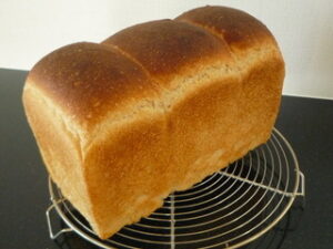 粉はグリストミル40%, ゴールデンヨット30%, 全粒粉20%, 特笠宝10%で、酵母はホシノビール酵母を使いました。