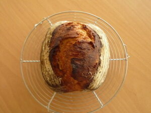 粉はメゾンカイザートラディショナル60%, グリストミル40%, 酵母はホシノぶどう酵母を使いました。
