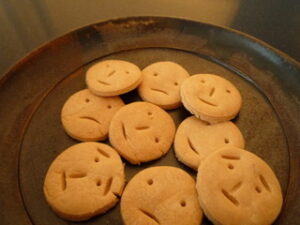 2回目は、粉の10%をココアに変えて作り、子供に顔を作ってもらいました。
