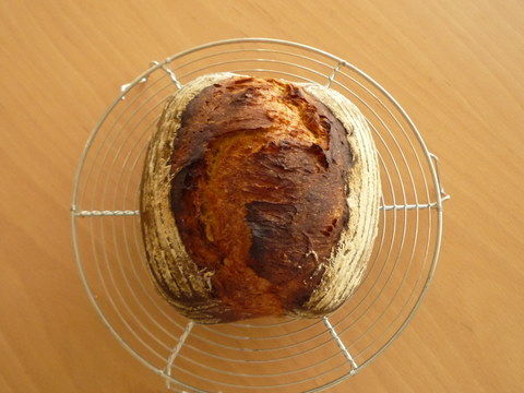 粉はメゾンカイザートラディショナル60%, ライ麦粉20%, 全粒粉20%, 仕込み水は70%くらいでした。