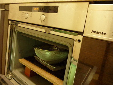 ミーレのオーブンは、断熱性能が高いゆえ、パンなどを焼いた後には、庫内温度がかなり保たれます。その余熱を利用して、私はいろいろなことに活用しています。