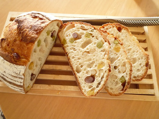 豆入りカンパーニュ、切り口はこんな感じです。色とりどりのお豆がほどよく入っていておいしそうに焼きあがりました(^○^)