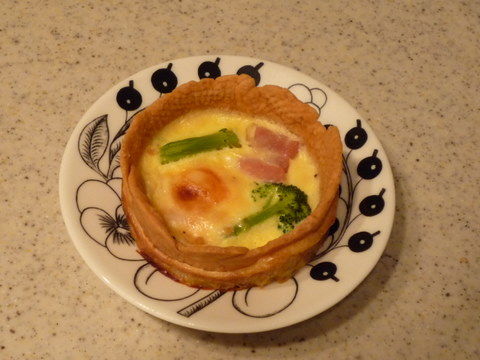 余ったパートを直径7.5cmのセルクルに敷き込み、ミニキッシュを作りました。これ、我ながら超かわいかったです。