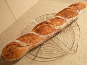 粉は『トラディショナル』90%, フォルサワー種10%, 酵母はホシノ丹沢フランスパン酵母を使いました。給水は70%くらいでした。
