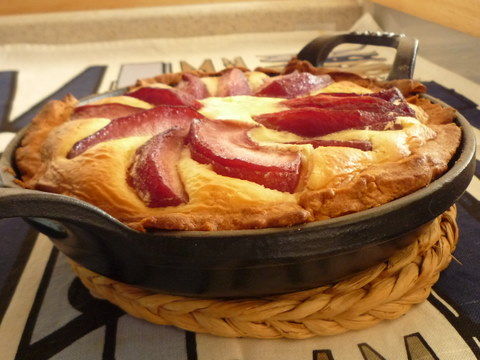 タルト生地を直接ディッシュに敷き込み、よく冷やしてからオーブンで一気に焼き上げました。