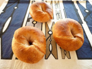 先日、紅玉の赤ワイン煮を作った時、砂糖の入った甘い赤ワインができたので、ベーグルの仕込み水にしました。