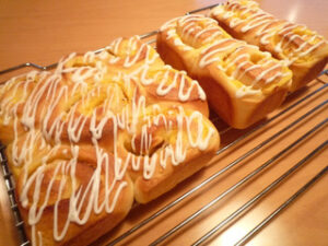 中には先日のスイートロールを作った時に余ったクレームパティシエールを入れました。