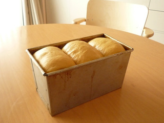 二次発酵終了後の生地の様子です。「なかなか高さが上がらない~」とジリジリしつつも、ここまでじっくり待つ忍耐力がパン作りには必要ですね(^_^;)
