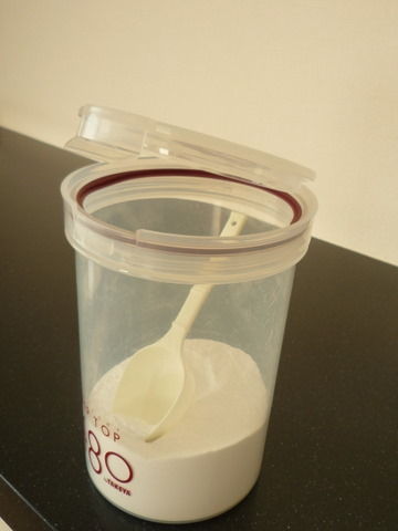 これまではタケヤ化学の「ツイストパック」というのを使っていました。これはこれで密閉性があって軽くて透明で、キッチンなどでも重宝している容器なんですが、同じタケヤ化学で「フリップトップ」というのを見つけてしまいました。これならツイストパックとほとんど同じでフタだけが片手でぱかっと開くようになっていて便利です。