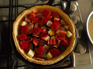 かぼちゃ、ベーコン、赤ピーマン、エメンタールチーズ