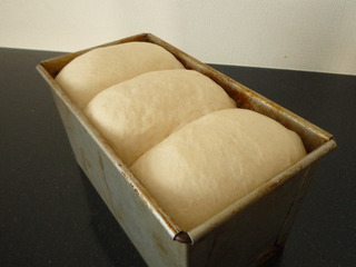 初焼きの時から使っている生種が元気良いので、山食も仕込んでみました。26℃のホイロで一晩発酵させた生地はよくボリュームが出ました。成形して型詰めしたら35℃で2時間ほどで型上まで高さが出てきました。