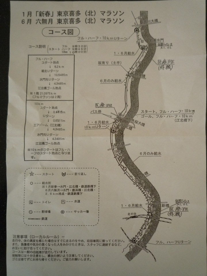 それから、ゼッケンと一緒に渡されたコース図です。この大会は規模が小さいのでホームページがなく、給水などの情報をほかの方のブログなどの口コミを頼りにするしかありませんでした。なので私も情報を載せておきます。これ、せめて事前にホームページなどで教えてもらえたらよいのに^^;