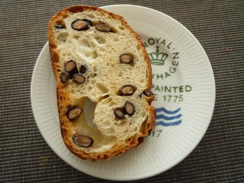 おせちの残りの黒豆を入れてカンパーニュを焼きました。