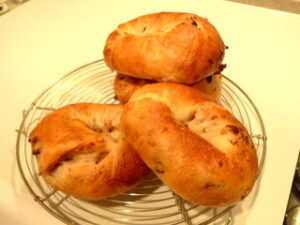 イーストで作るベーグル、すごく久しぶりなのですが、ふっくらと体積がでたのですごくうれしかったです。