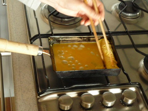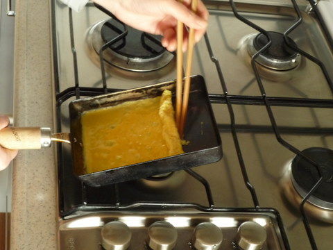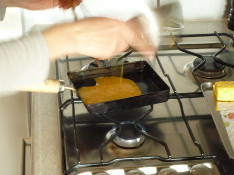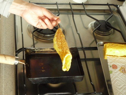 ウチでは、だし巻き卵を作るとき、鉄の卵焼き器を使っています。