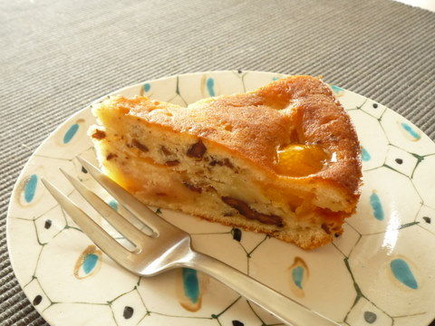 金柑ケーキ、食べてみたら、生地の甘さとくるみの香ばしさと金柑の甘酸っぱさが渾然一体となってすごくおいしかったです。息子にも大うけでした。