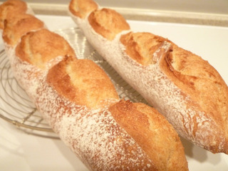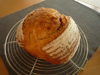 前夜にクイジナート DLC-10 Pro で捏ねた生地を室温で一晩寝かせて、朝パンチを入れたら野菜室で15時間くらい寝かせました。夜遅くに室温で1時間戻したら成形して40分くらいで窯入れしました。