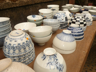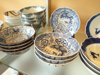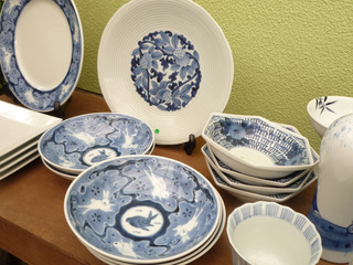 明日のお題は、パンの朝食に合う染付の平皿と、向付と、いろんな小皿類です。あとトンデモ食器も芸の肥やしにね(^人^)