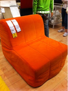 ソファベッドのコーナーで、チェアベッドというのを見つけました。カバーをはずすとシングルベッドに早変わり。カバーはいろんな色から選べます。これコンパクトでよくないですか?