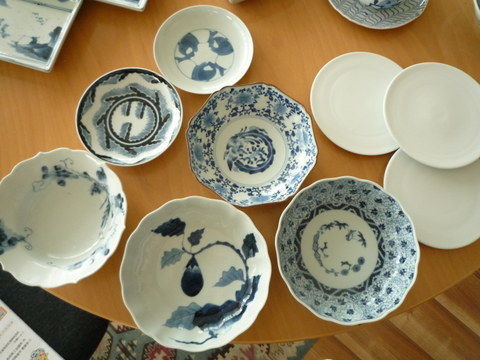 簡単に紹介しますと・・・、まずこのあたりが李荘窯業所のものです。今回、できるだけきれいなお皿が欲しかったので、なます皿を中心に思い切った買い物をしました。でもやっぱり色々欲しくて、B級品も混ざっています。